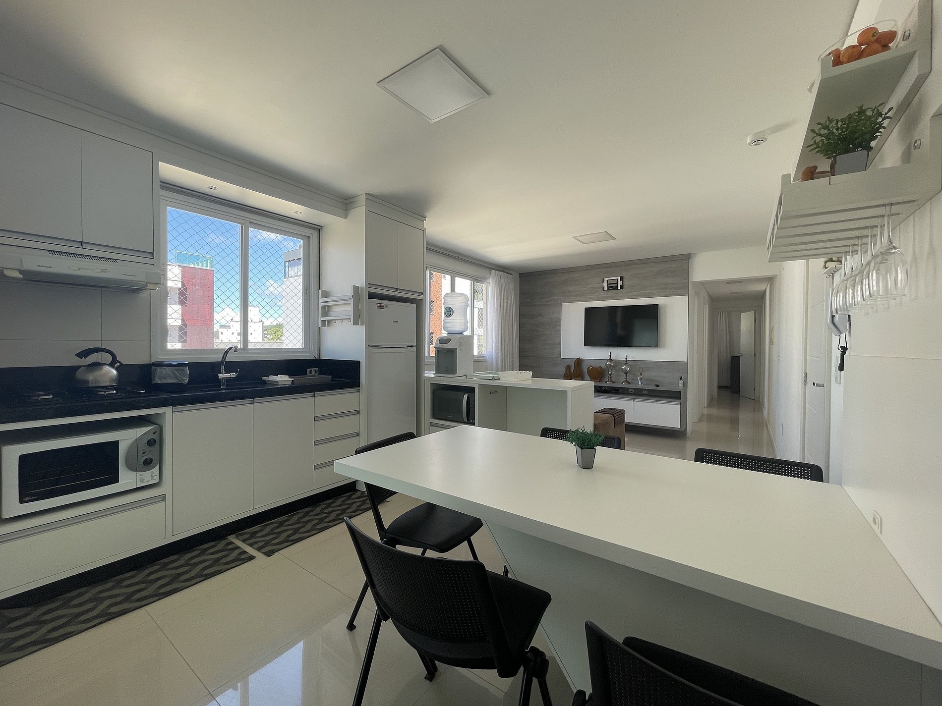 Completamente mobiliado e equipado: ambientes prontos para receber você, incluindo cozinha completa e sala de estar aconchegante.
